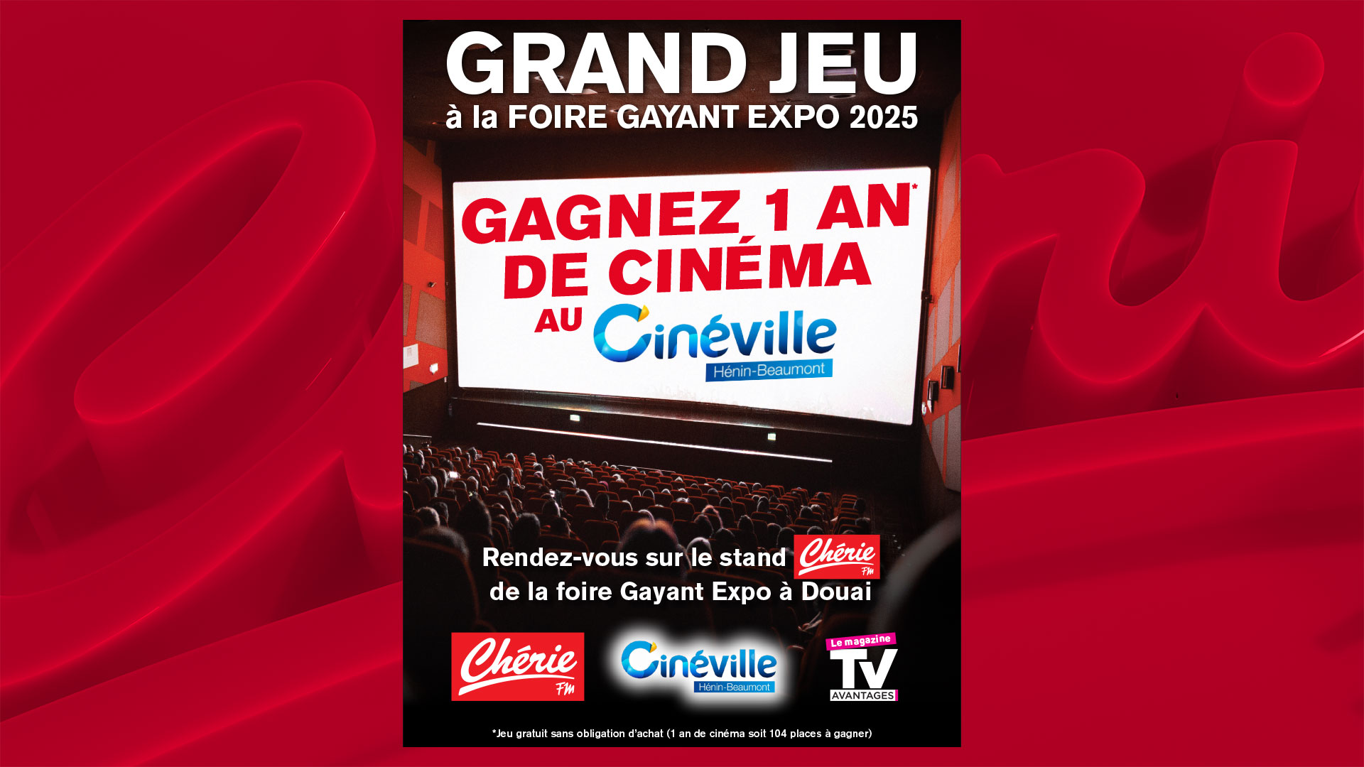 Le règlement du jeu est disponible sur simple demande écrite à Chérie FM Hauts de France, 1bis rue Gustave Spriet – 62300 LENS